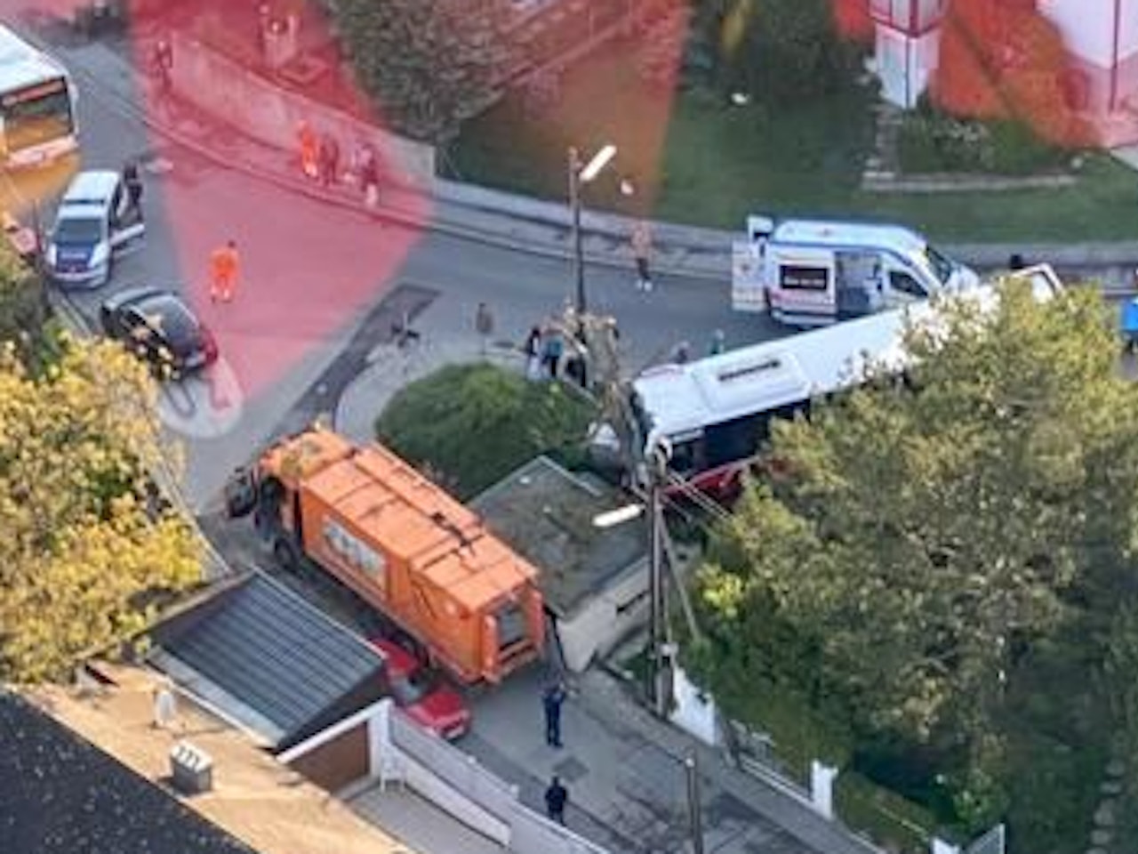 Unfallauto landete im Vorgarten. Der Bus soll gegen einen Baum und ein Trafohäuschen gefahren.